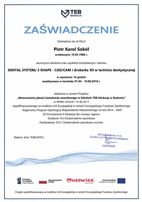 Stale poszerzamy naszą wiedzę i umiejętności, uczestnicząc w kursach i współpracując z technikami dentystycznymi. Dzięki temu oferujemy rozwiązania zgodne z najwyższymi standardami oraz technologiami.